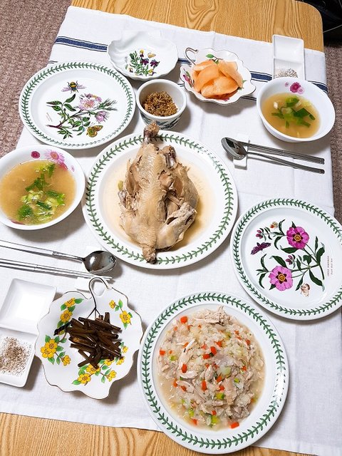 이렇게 삼계탕으로 변신-! 한마리는 해체시켜서 닭죽으로.