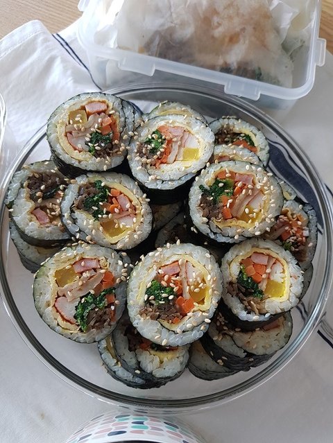 우엉조림하고 속재료들 준비해서 간만에 김밥도 싸고,
