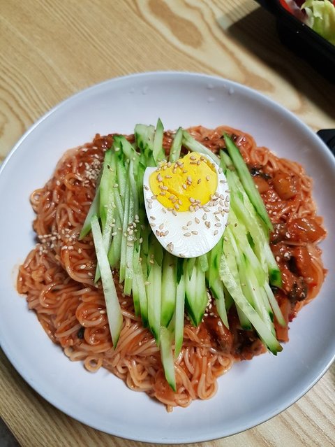 비빔국수가 있으면 딱일 거 같아서 묵은지 넣고 새콤달콤하게