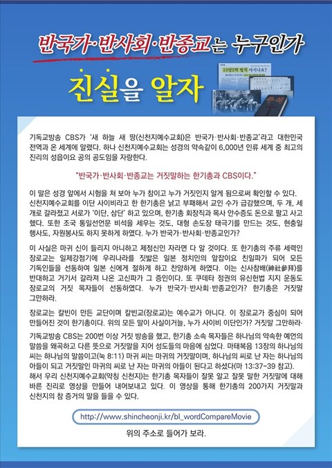 하지만 한기총과 CBS는 일방적으로 신천지를 비방에만