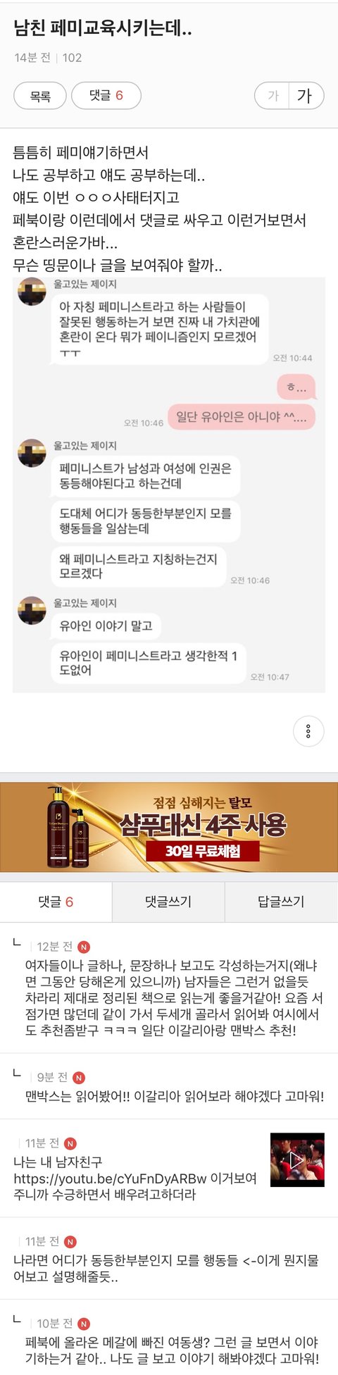 남친한테 페미교육시키는데 도와줘