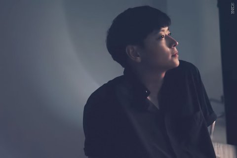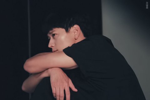 그냥 검정 반팔티셔츠 걸쳣는데 얼굴이 빛나