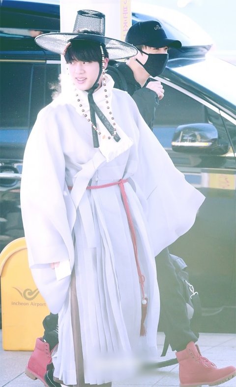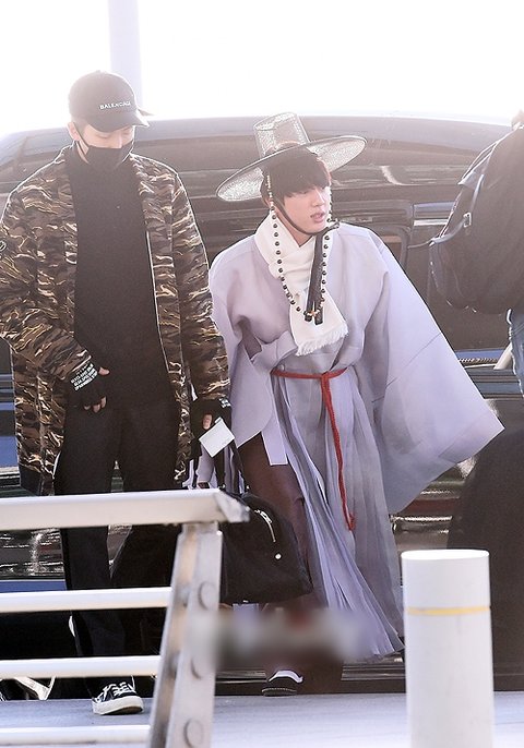 다른 멤버들은 다들 사복 입엇는데 혼자 한복을 차려입고 왓더라궁