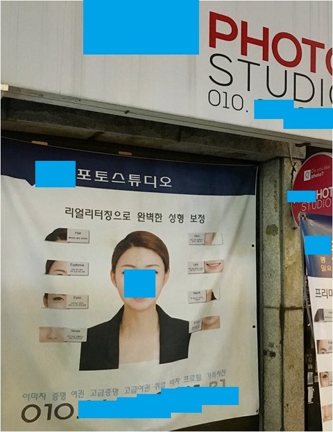 지난주 금요일(11/24). 우연히 건대입구 맛의 거리에서 친구가 “A(저. 본인)야 이거 너 아니야?” 라며 아주 큰 현수막을 가리켰습니다. ‘리얼리터칭으로 완벽한 성형 보정!’ 이라는 문구와 함께 대자보 4배 사이즈의 큰 현수막에 제 얼굴이 떡하니 있더군요.