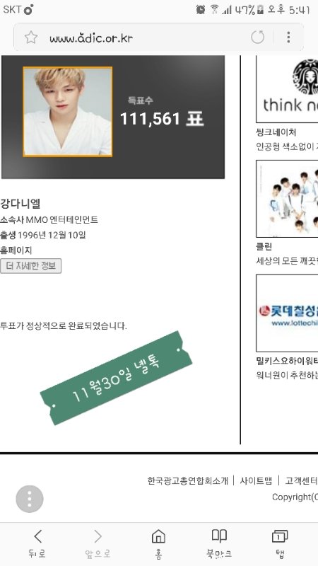 얘두라... 광고모델 툽좀 해주라... 어제까지 1위였는데 지금 2위야... 오늘이 11월 말일인거 알지? 나 우리 녜리 1위시켜주고 싶다... 시간이 없어~~~ 고고~~