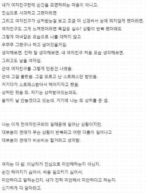 작년에 올라왔던, 지쳐서 헤어지는 남자들이 읽었으면 하는 글