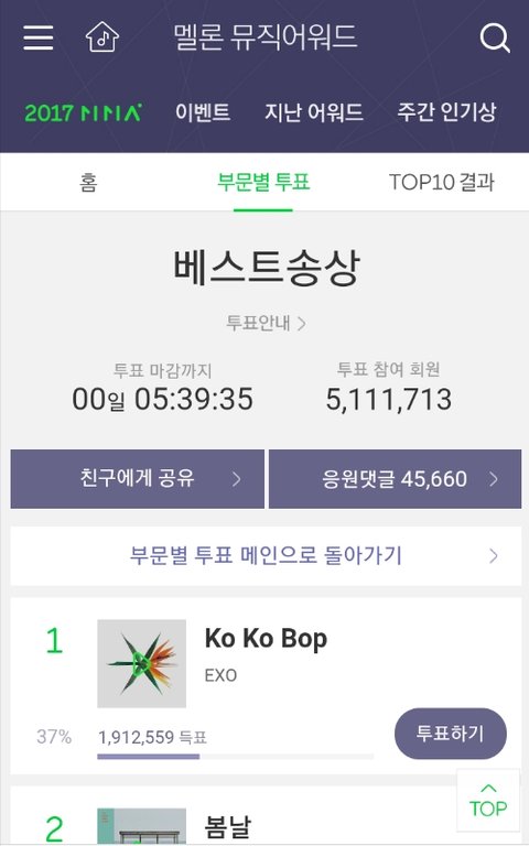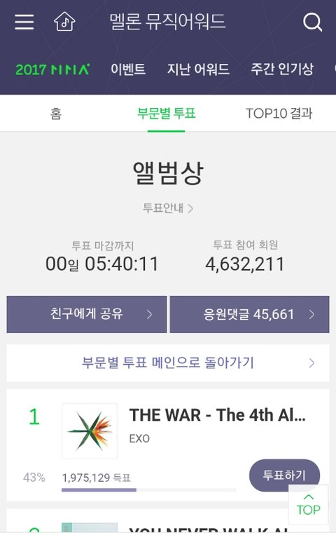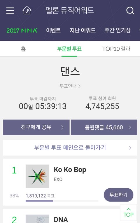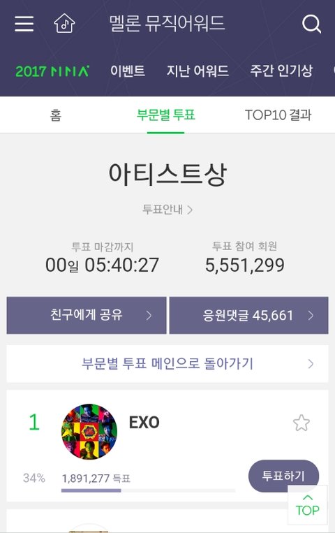 멜뮤 투표 상황을 봤는데 엑소 정말 대단한 것 같아.