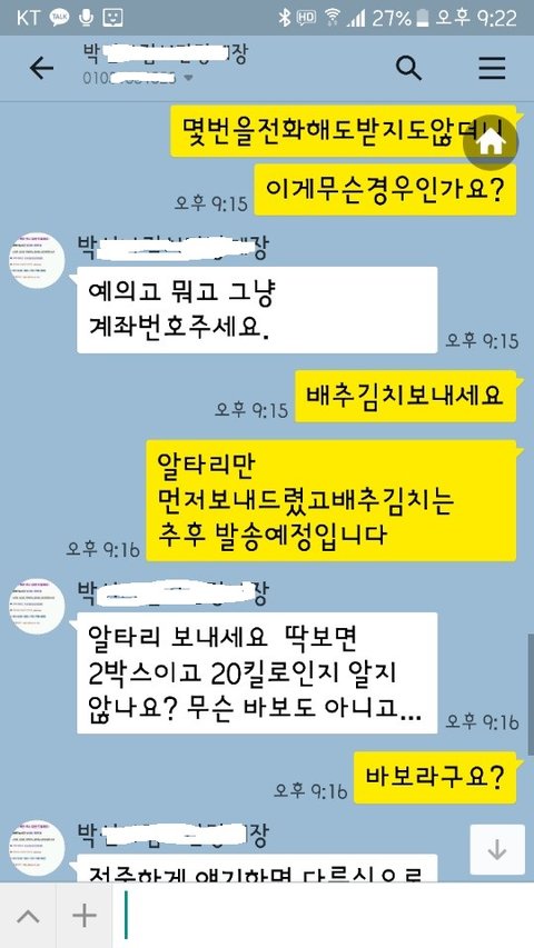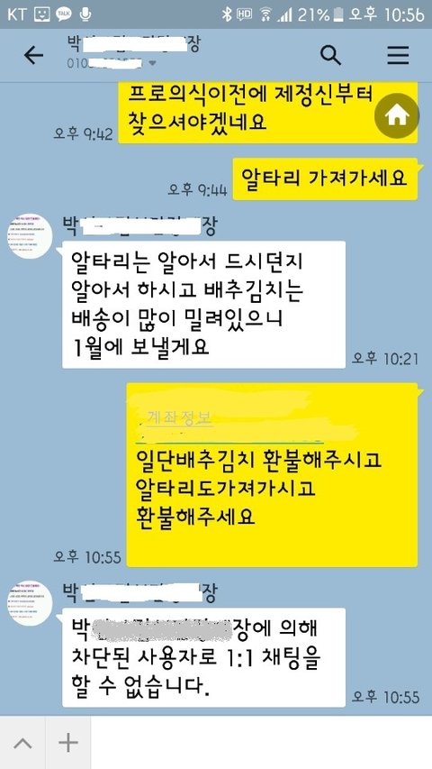 아직 받지도 못한 배추김치는 1월에 보내겠다며 일방적으로 차단해버렸어요.