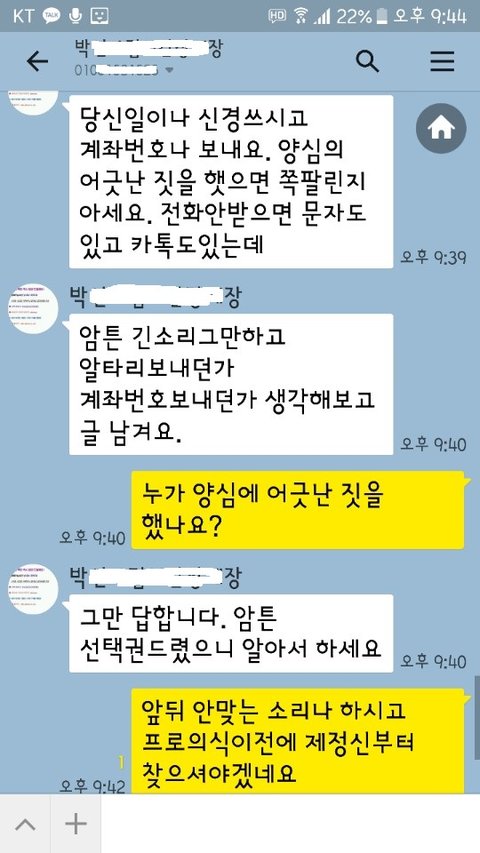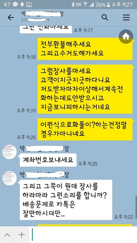 밤늦은 시간에 카톡으로 바보라고 막말하고 지긋지긋한 진상고객 취급을 하네요.