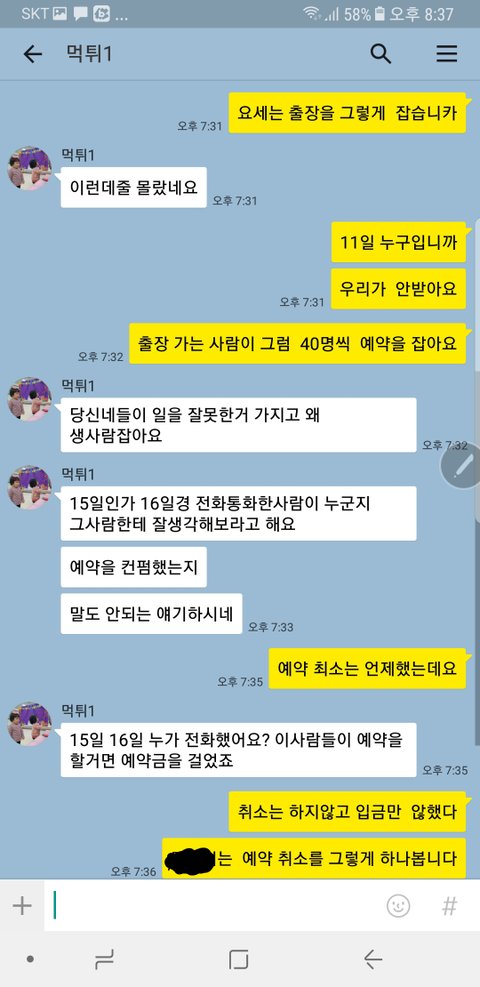 전화해서 단체예약 연말 금요일에 하고나서 계약금 입금해달라고 해서 이금 안했으면 취소 한거다 아니면 전화해서 예약 취소전화해주는게 취소다