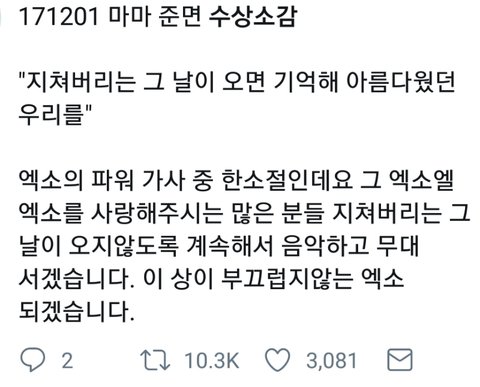 그리고 우리가 엑소에게 전하는 수상소감까지