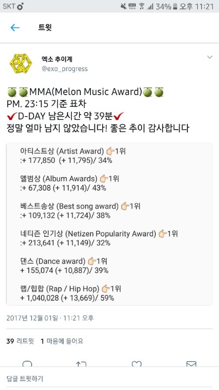 엑소야 우리 투표 전부문 1위했어!!!!!