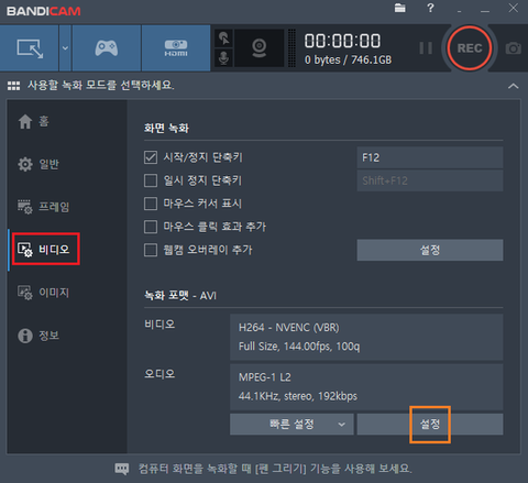 반디캠(Bandicam) 설정은 이것으로 끝입니다.
