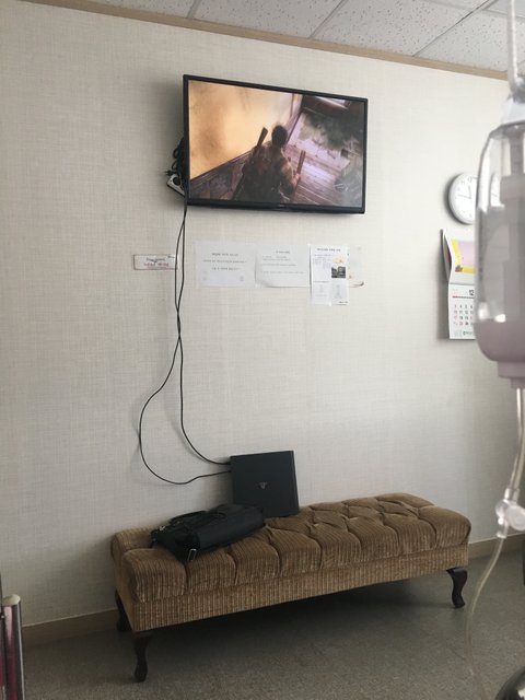 병실 티비와 연결해가지고는 아주 열심히하네요ㅠ