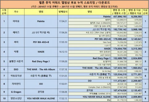 앨범상 음원성적이 압승