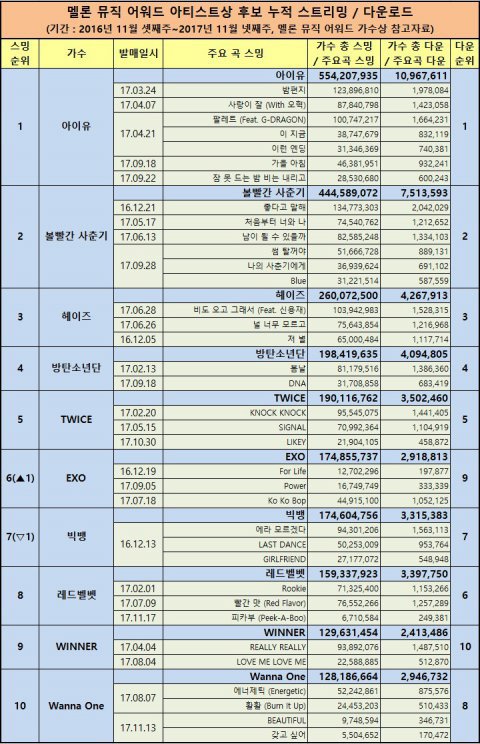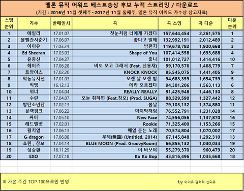 아티스트상 음원성적 압승