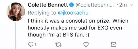 해석: 나는 엑소가 받은게 위로 차원의 상이라고 생각해. 내가 비록 그쪽 팬이긴 하지만, 그래도