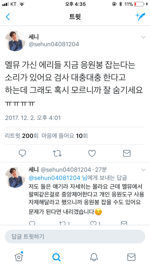 ㅁㅊ개인응원봉 ㄹㅇ잡는대 대충검사한다네