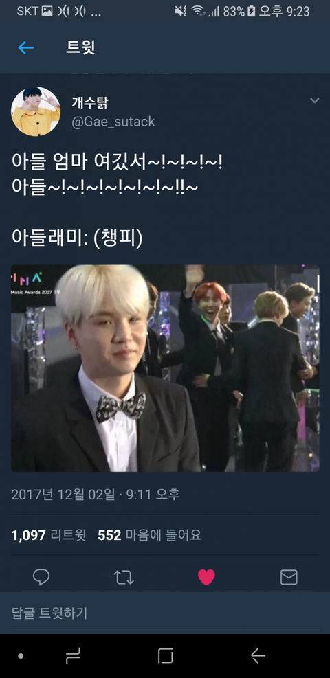 +수정해쏘 윤기가 아들이라는게 더 잘어울려보인다해서ㅋㅋㅋ