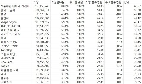 기준이 단순히 음원만이 아니라 투표, 심사까지 포함되니까 사실 이상할 건 없음.