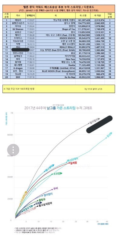 그리고 이건 베스트 송상에대해서인데 절대 ㅂㅌㅅㄴㄷ을 까는게아니라 멜론뮤직어워드가 잘못된 부분이고 ㅇㄴ분들의 노래가 후보에 오르지도않았어 스밍은 ㅇㄴ분들이 1위찍었는데 이번에 또 내부데이터 웅앵웅할까?