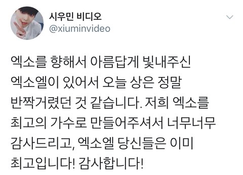 시우민의 수상소감이 엑소엘을 최고로 만들어주었어