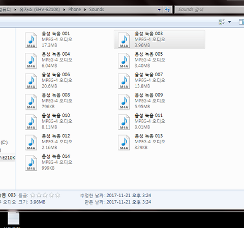 3번 파일 녹음기간이 4분 좀 넘습니다.