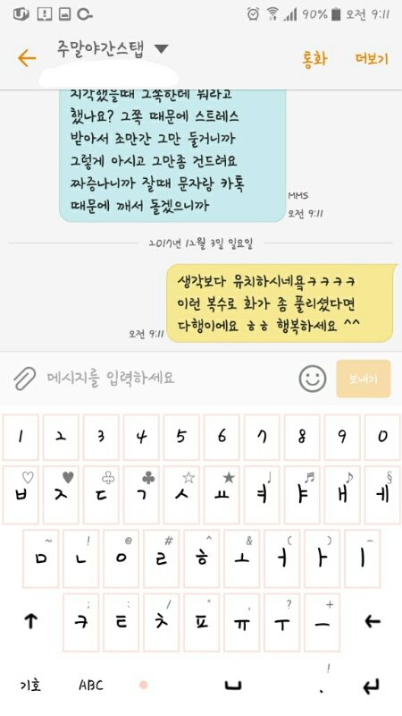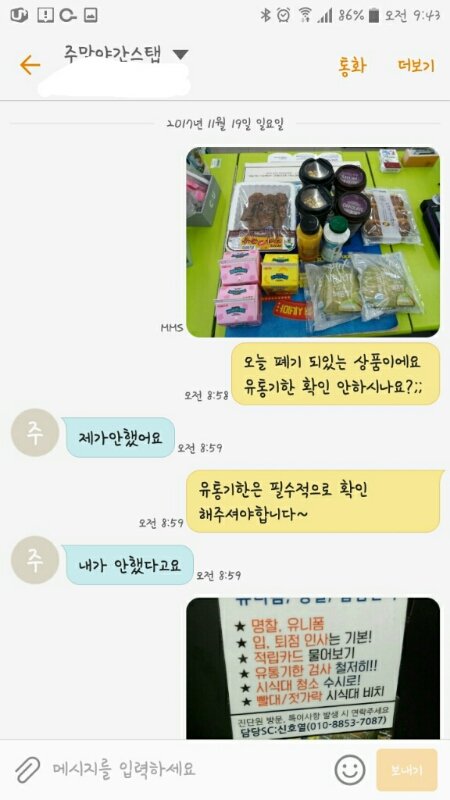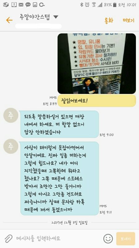 좋을거라고 야간알바생 번호를 알려주시더라구요 그래서 저는 톡을