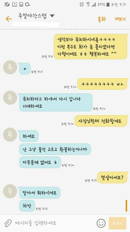 환불 다 해주고 너무 황당해서 문자하나 남겼죠
