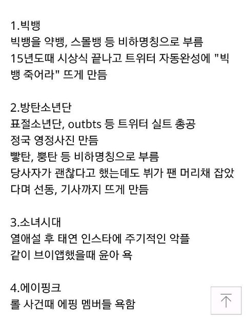 아미인데 작년 5월 절대 못잊음. 너네 입으로 소수라 말하지만 그때 트윗수만 32만명이었어. 너네 오늘 엑소유니버스 실트도 32만이 안되는데 그럼 그 실트를 얼마나 열심히 올렸다는 뜻이냐. 그러고도 아직까지 단 한마디의 사과도 없었던거 칭찬한다 진짜 그래도 그 때 너네랑 연합했던 다른 팬덤들은 사과라도 했다.