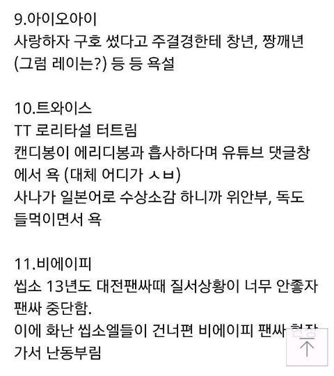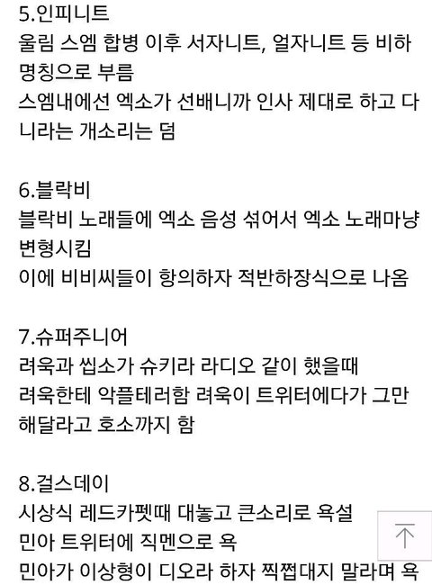 __ 비비씬데 아직도 저때 에리 __ 진짜 아오 __ 잊지못한다 뭐? 우리 애들 노래를 갖다가 키를 올려서 지들 노래니 뭐니 지랄 똥싸고 앉았다 __ 진짜 우리가 으르렁갖다가 키낮춰서 우지호~ 표지훈~ 이랬으면 진짜 양파 까듯이 까버렸을거면섴ㅋㅌㅋㅌㅌㅌㅌㅌㅌ 저작권도 모르냐 신발 하긴 느그오빠들은 저작권 그딴거 하나도 없게 작곡작사도 못하지~ 프로듀싱도 못하지~ 하 ㅅㅂ 엑소도 이정도까진 아니었는데 에리들때문에 환멸나게 생겼어