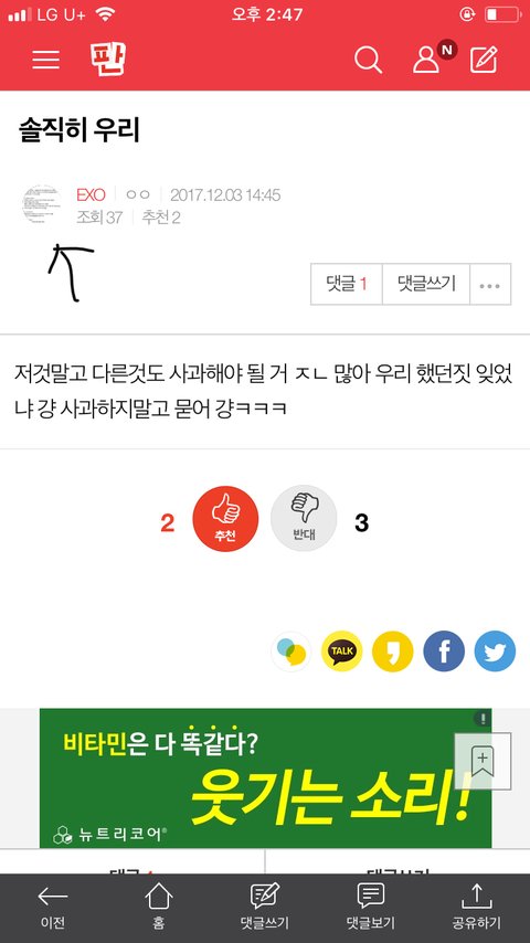 그리고 사과문 쓸거 아니면 다 닥쳐