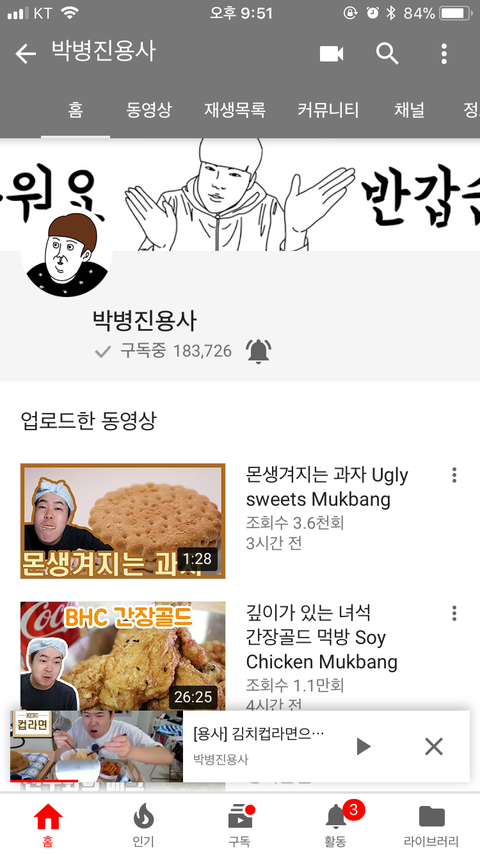 박병진님 완전 영상도 정말 꾸준히 매일매일 올리시고 너무 착하셔....우울한날 보면 진짜 재밋는 예능 뺨치심..꼭 봐 !!!!!!추천해..