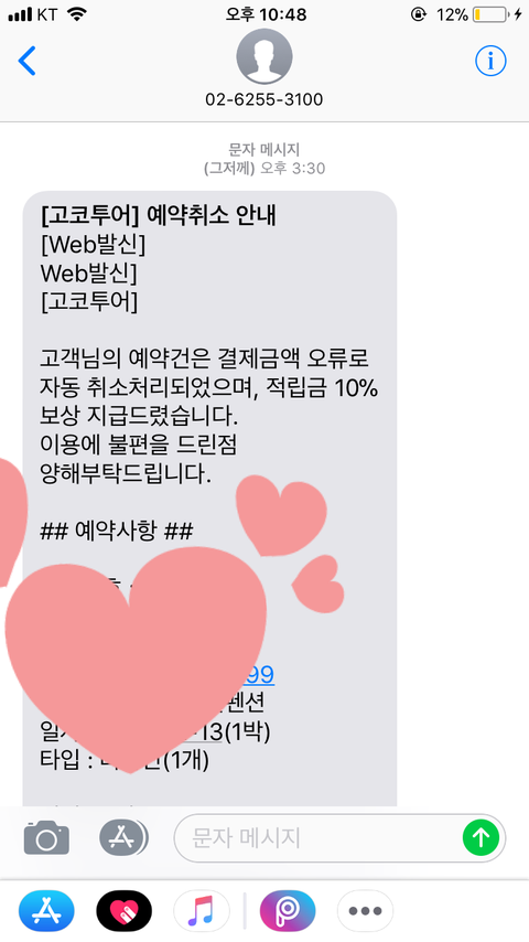 결제금액의 오류로 숙소예약이 자동취소가 되었다는 문자였습니다. 계좌이체를 하여 금액을 잘못보낸것도 아니고 카드 결제로 하였는데 무슨 금액오류인가 싶어서 바로 고객센터로 전화 연결을 하였지만 받지않았습니다.