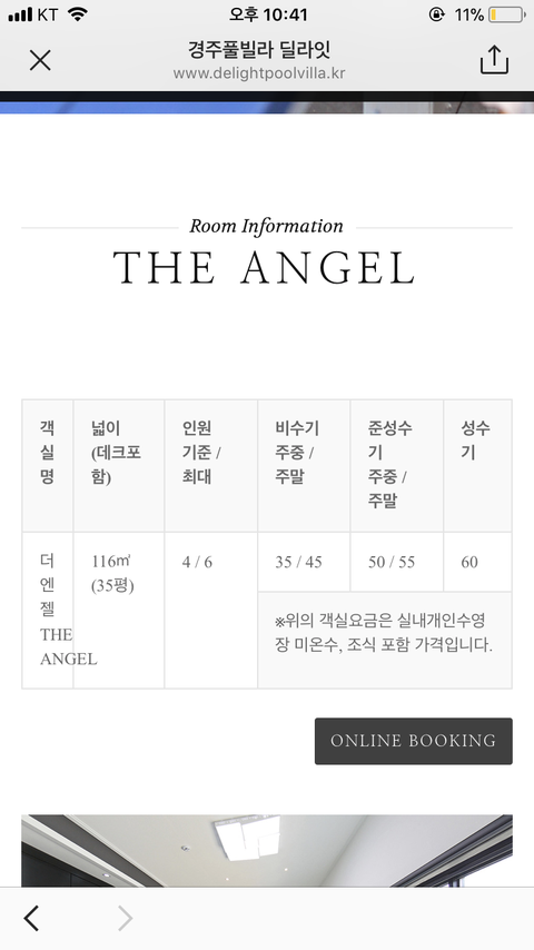 예약하려고 네이버에 검색하니 정상가가 35만원이나, 26만원의 할인된 가격으로 예약을 받는 사이트가 있어서 그 사이트를 통해 예약하게 되었습니다.