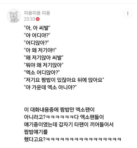 저 모든말을 엑소엘이 한 거라는 증거 있냐고 타팬덤들이 말을 하는 와중에 엑소엘들이 엑소 어디앉냐고 가운데 아니냐고하면서 말에 끼어든거일수도 있는거 아니냐 하셈