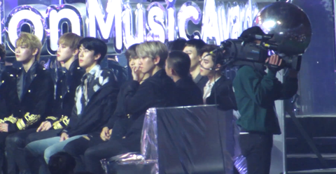이건 아이유가 말이 헛나올때 카이가 웃었어 ㅋㅋㅋㅋㅋㅋ 옆에 수호도 살짝 웃으신거같아