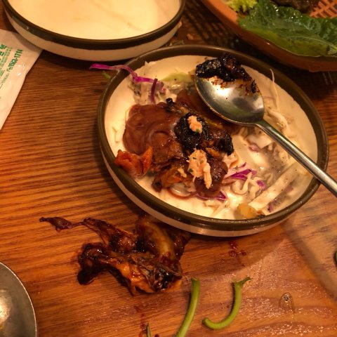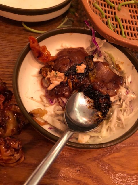그리고 남자친구는 닭갈비에 닭을 수저로 떠서 먹는데 저렇게 탄게 눈에 보일 정도로