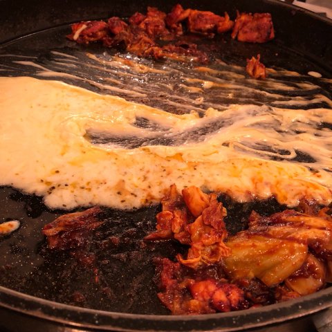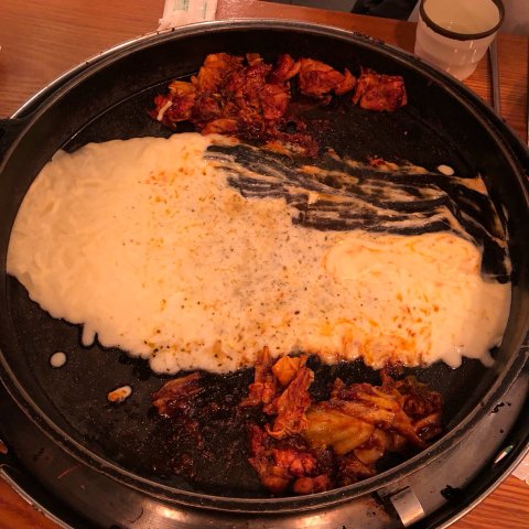 이상태로 닭갈비가 나오고 조금 후 남은 열기로 인해 치즈가 녹았습니다.