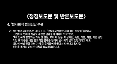 이는 cbs가 법원의 확정 판결을 무시한 처사로 새벽3시에 정정 및 반론 보도를 한 것이며,