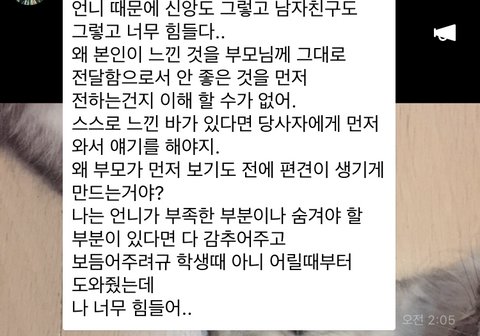 (동생은 제가 부모님께 다이렉트로 말하지 않고 본인에게 먼저 말해서 본인이 저와 이야기를 나누고 부모님께 말씀드리지 않았길 바람)