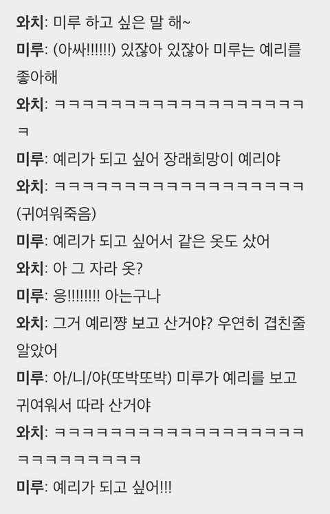 미루팬이 예리랑 둘이 닮았다고하니까