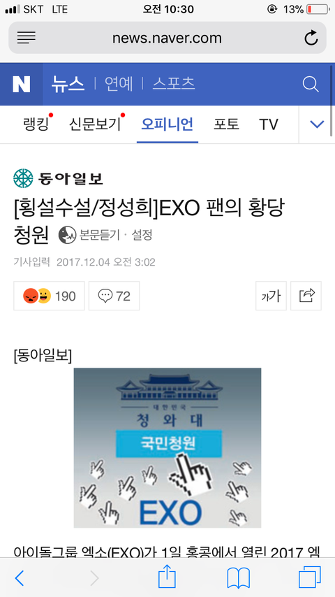엑ㅇㅗ앨이 공식적으로(엑1연이) 올린 청원은 케이팝 과열 마케팅 제재에 관한 것이고 전혀 문제 될게 없음.