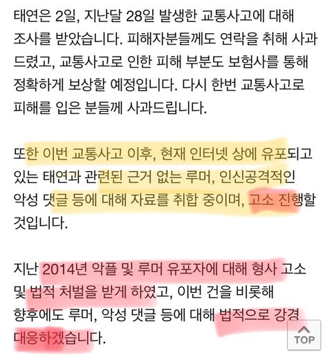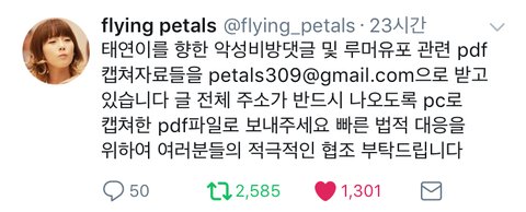 태연 대표 팬페이지에서 고소 PDF 수집 글 올라왔고