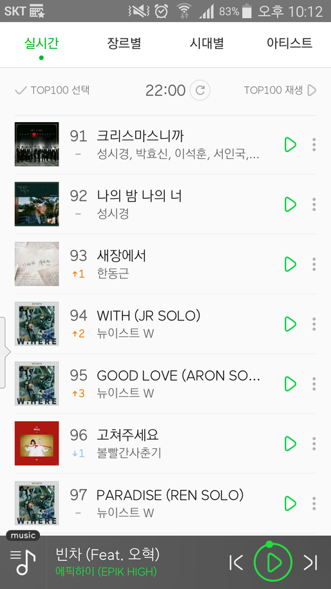 역시 12월 되니까 어김없이 '크리스마스니까'가 차트 되찾아오네ㅠㅠ 이거 겨울되면 생각나는 띵곡이지..