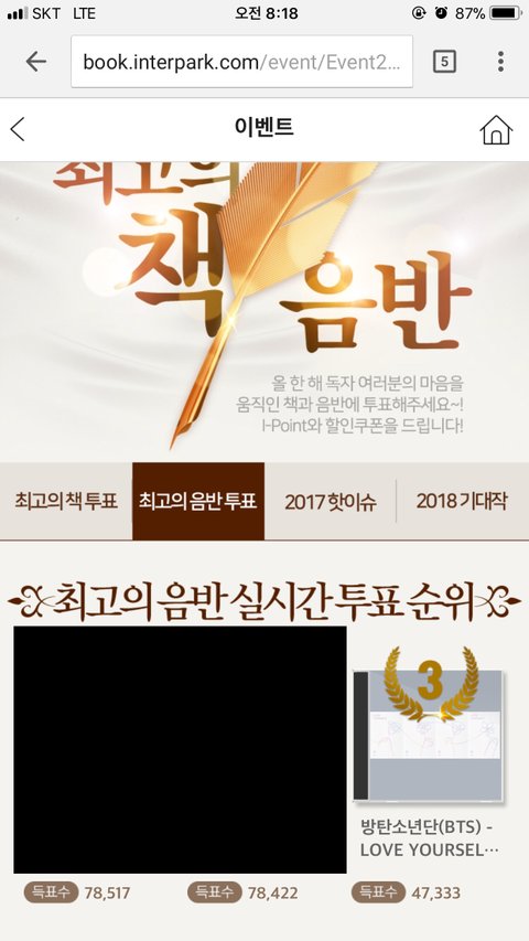 우리 고작 하루동안 5천표.. http://book.interpark.com/event/Event2017.do?_method=2017ClosingEventVoteMusicM#Music