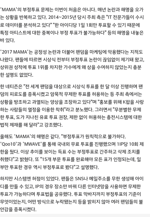 초점IS] 'MAMA' 후폭풍, 폐지 국민청원까지..수년째 부정투표 논란