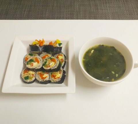 김밥이랑 미역국을 만들어 먹었어요 ㅎㅎ