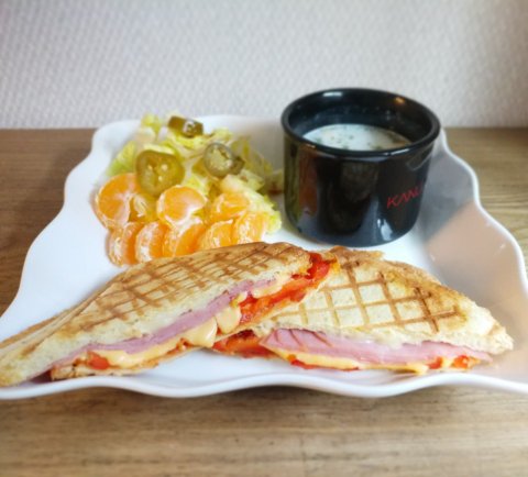 피자맛이 났던 햄치즈 토마토소스 넣은 샌드위치..