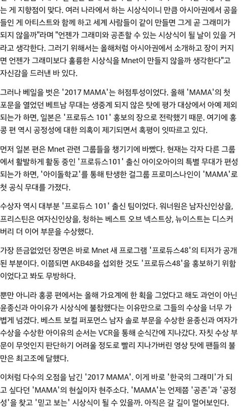2017 MAMA '韓 그래미'가 될 수 없는 이유
